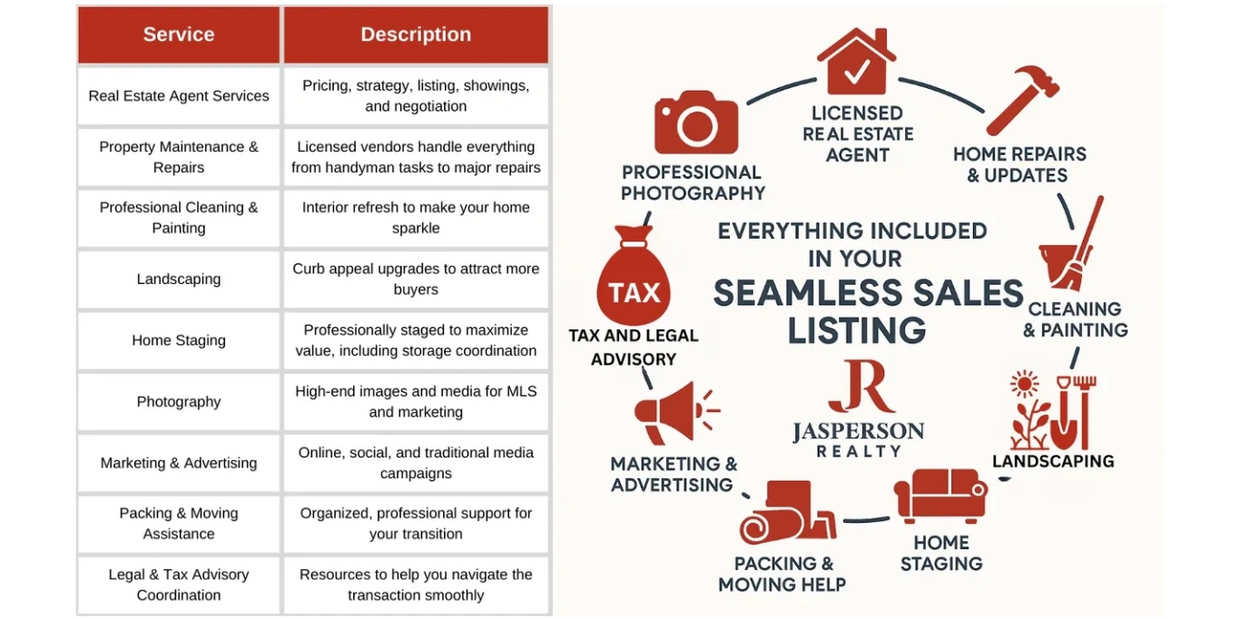 Selling a home can be stressful. Between repairs, staging, marketing, and moving, most sellers feel overwhelmed before their listing even goes live. SeamlessSales Solutions is Jasperson Realty’s full-service listing program designed to take that burden off your shoulders — while increasing your net proceeds.